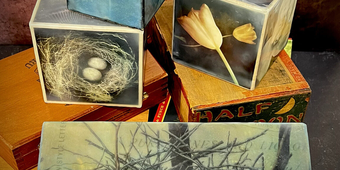 ASSEMBLAGE BOX AND BLOCKS WITH ENCAUSTICS